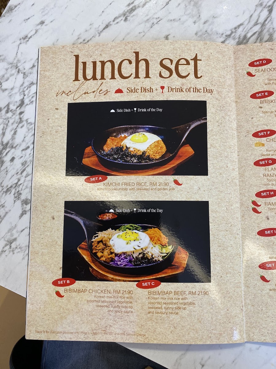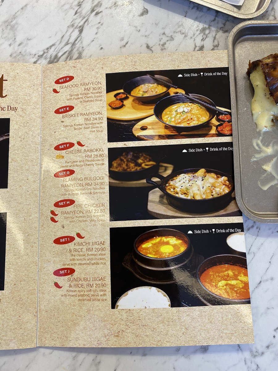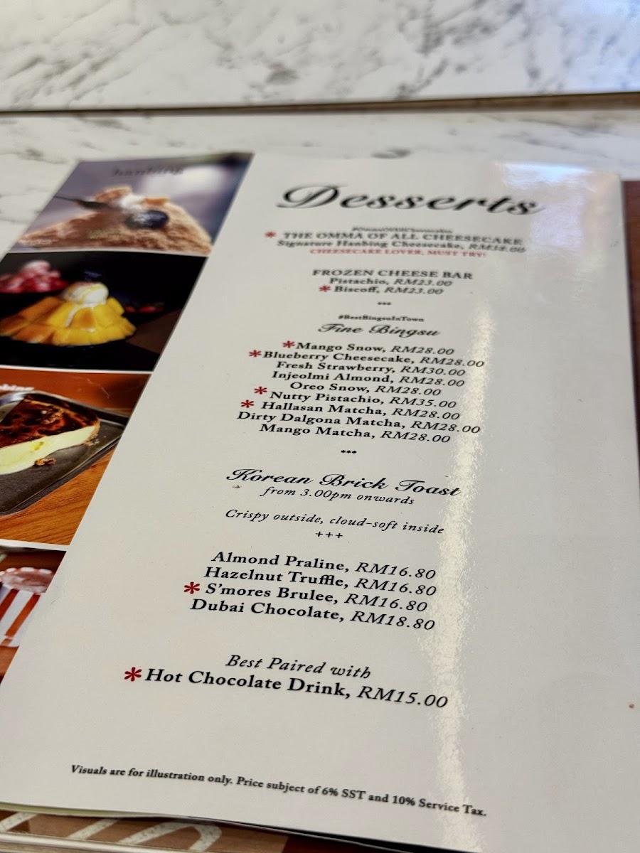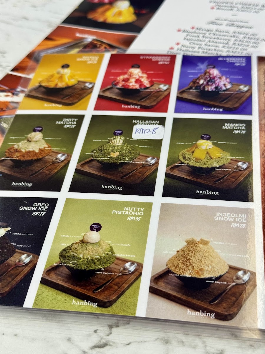 Hanbing Korean Dessert Cafe in IOI City Mall offers a delightful array of Korean-inspired dishes and beverages, making it a perfect spot for a casual meal or a quick refreshment. The coffee selection includes comforting choices like Chocolate Latte, Green Tea Latte, and Caffe Latte, along with a refreshing Caramel Macchiato and the classic Americano. For those looking for a more substantial dish, the rice sets are a standout, featuring flavors like the savory Dakgalbi Rice Bowl, the tender Bulgogi Rice Bowl, and the exciting Spicy Octopus Rice Bowl. The cafe also offers refreshing smoothies, including Mango Smoothie and Green Tea Smoothie, perfect for a light and healthy treat. Kimbap lovers will enjoy the flavorful options such as Kimchi Kimbap, Tuna Mayo Kimbap, and Bulgogi Kimbap, each offering a unique taste. The bibimbap choices are also a must-try, with the Spicy Octopus Bibimbap With SPICY Sauce and the Spicy Chicken Bibimbap With SPICY Sauce being particularly popular for those who enjoy a spicy kick. For a refreshing twist, try the Strawberry Lemonade K-Pop Soda. Soups like Kimchi Soup With Rice provide a comforting addition to the menu, while noodle enthusiasts can savor dishes like Spicy Ramyeon and Japchae. With such a wide range of options, Hanbing Korean Dessert Cafe is sure to satisfy any craving, whether you're in the mood for a light snack or a filling meal.